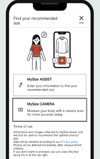 1. This function is available on the UNIQLO App or mobile website. Please allow to access your device's camera to use in the 【MySize CAMERA】 to measure your size.