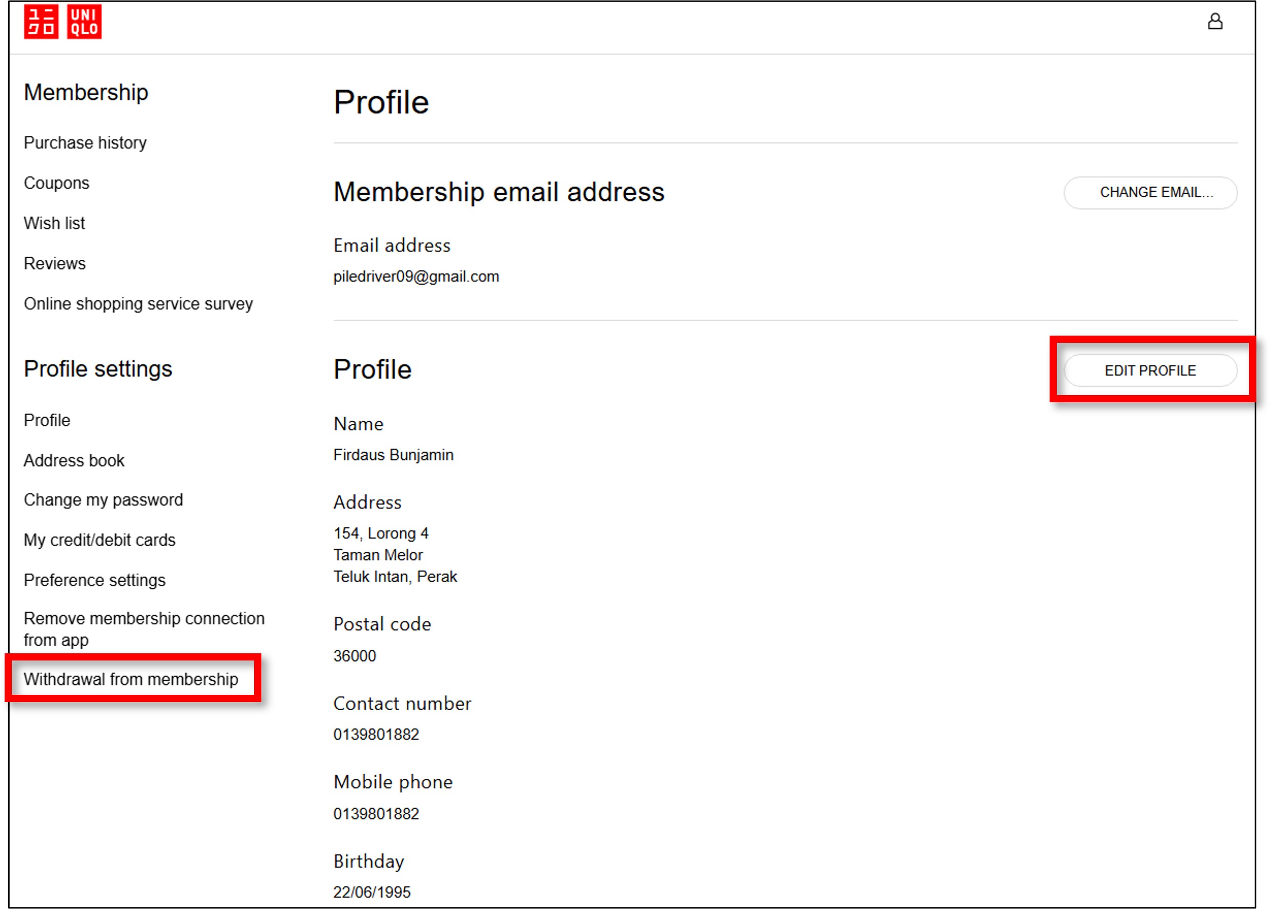 5. Click 【EDIT PROFILE】 and update your address.