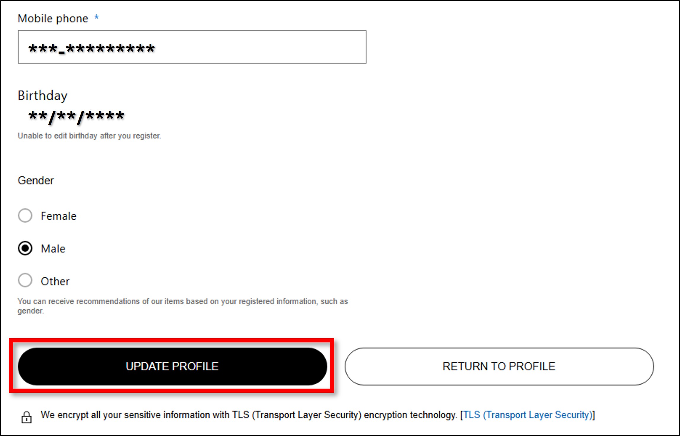 To ensure your smooth online shopping experience and proceed checkout without any problem, please make sure all your personal account details below are well registered correctly: