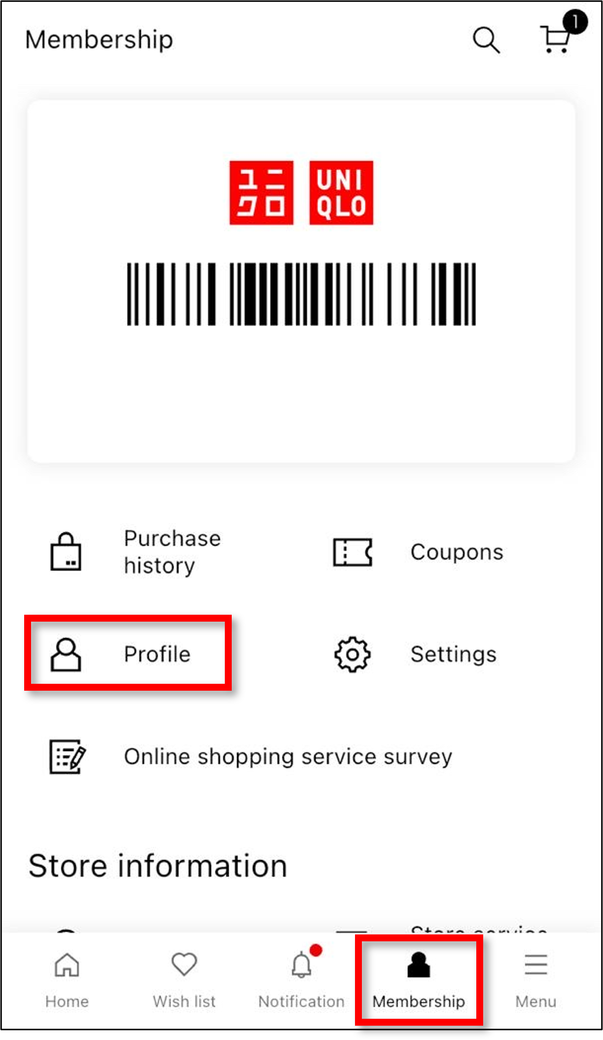 1. Click the membership profile icon on bottom.