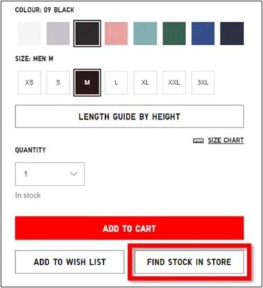• Search for the product you want and click on 【FIND STOCK IN STORE】 option.
