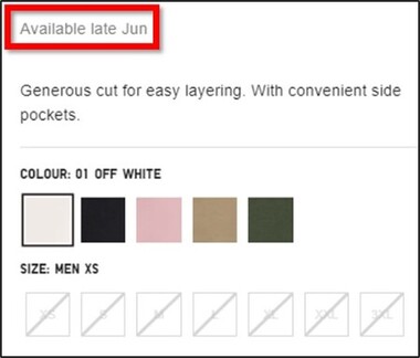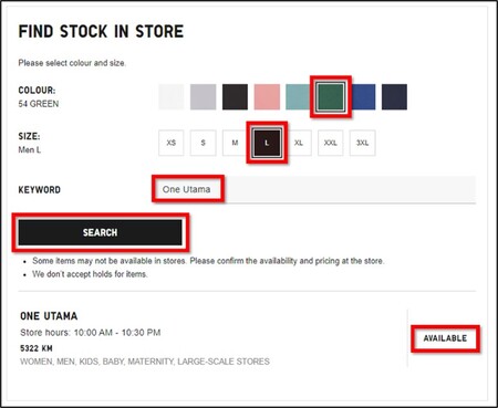 • To check the product stock status in online store, select a colour and size to check the availability.